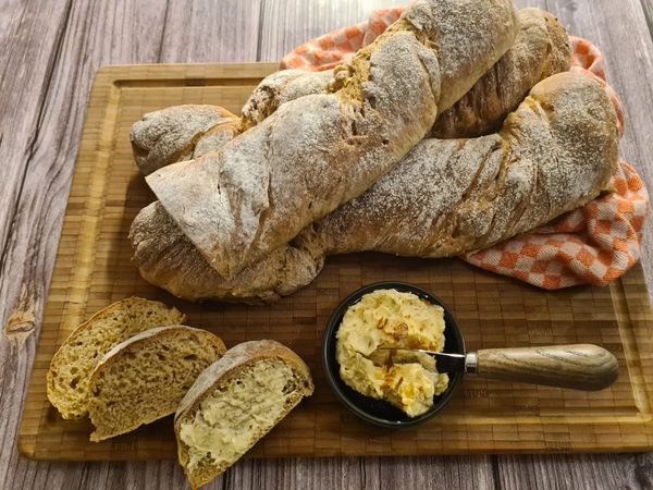 Dazu schmeckt hervorragend eine Butter aus 125 g weicher Butter, 1 EL Oh my Onion und 1/2 TL Royales Genuss Salz. Alles miteinander verrühren und 30 Minuten im Kühlschrank ruhen lassen.